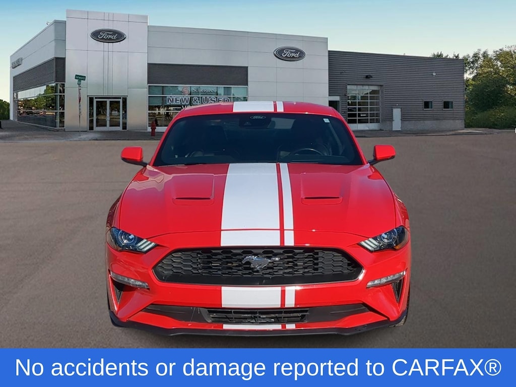Race Red 2023 Ford Mustang EcoBoost Premium RWD 10-Speed Automatic EcoBoost 2.3L I4 GTDi DOHC Turbocharged VCT Clean CarFax, CarFax One Owner Vehicle, Ford Blue Certified, Brand New Tires & Alignment!, CarFax Good Reliability!, 12" LCD Digital Instrument Cluster w/MyColor, 20" Wheels, Equipment Group 201A, Exterior Parking Camera Rear, Ford Safe & Smart Package, Four Wheel Independent Suspension, Fully Automatic Headlights, Heated Steering Wheel, Leather-Trimmed Bucket Seats w/Color Accents, Memory Driver Seat, Mirrors & Ambient Lighting, Rear Parking Sensors, Remote Keyless Entry, Universal Garage Door Opener (UGDO), Wheels: 20" x 9" Premium-Painted Aluminum.