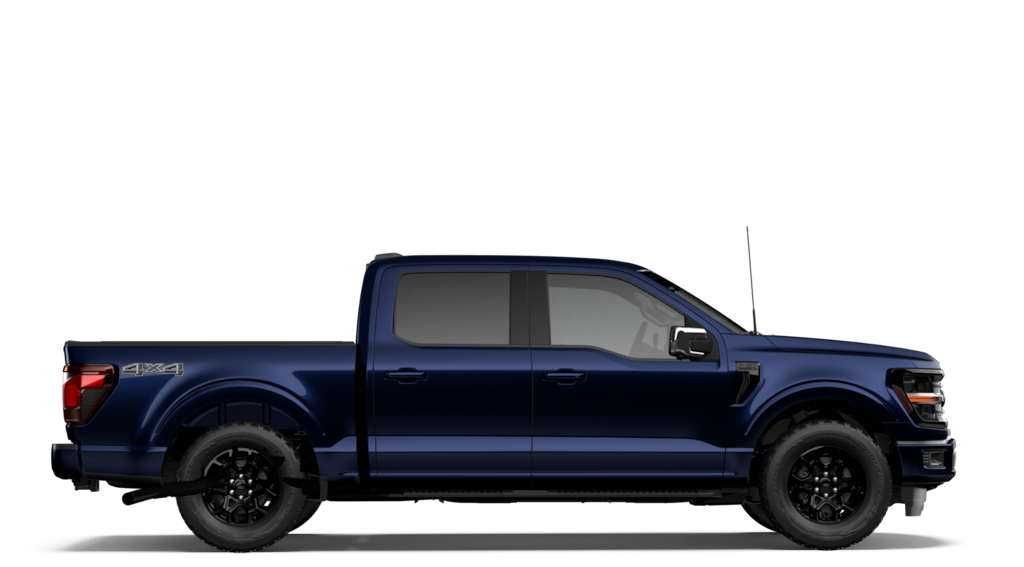 F-150 XLT is nicely equipped with Equipment Group 302A Mid (18" Painted Aluminum Wheels, 3.55 Axle Ratio, 360 Degree Camera, 400W Pro Power Onboard (cab & Bed), Adaptive Cruise Control with Stop and Go, AEB Oncoming, Auto-Dimming Rear-View Mirror, Black Platform Running Boards, Body-Color Door Handles, Cloth 40/20/40 Front Seat, Dual-Zone Electronic Automatic Temperature Control, Ford Co-Pilot360 Assist 2.0, Front Parking Sensors, Heated Front Seats, Intelligent Access with Push Button Start, Power Glass Heated Sideview Mirrors, Power-Sliding Rear Window, Radio: AM/FM Stereo with SiriusXM 360L, Remote Start System with Remote Tailgate Release, SYNC 4 with Enhanced Voice Recognition, Towing Technology, and Wrapped Steering Wheel), Ford Connectivity Package (1-Year Included), GVWR: 6,650 lbs Payload Package, Internet access capable: 5G Modem - Ford Connectivity Package, XLT Black Appearance Package (6" Black Running Boards, Black Exterior Badging, Black Grille, Body-Color Front and Rear Bumpers, Dark Interior Appliques, Floor Shifter, Gray Box Side Decal, Unique Sport Cloth 40/Console/40 Front-Seats, and Wheels: 18" Gloss Black), 4WD, 4-Wheel Disc Brakes, 6 Speakers, ABS brakes, Air Conditioning, Alloy wheels, AM/FM radio: SiriusXM with 360L, Auto High-beam Headlights, Brake assist, Bumpers: body-color, Compass, Delay-off headlights, Driver door bin, Driver vanity mirror, Dual front impact airbags, Dual front side impact airbags, Electronic Stability Control, Emergency communication system: SYNC 4 911 Assist, Front anti-roll bar, Front Center Armrest, Front fog lights, Front reading lights, Front wheel independent suspension, Fully automatic headlights, Heated door mirrors, Illuminated entry, Low tire pressure warning, Occupant sensing airbag, Outside temperature display, Overhead airbag, Overhead console, Panic alarm, Passenger door bin, Passenger vanity mirror, Power door mirrors, Power steering, Power windows, Radio data system, Rear Parking Sensors, Rear reading lights, Rear step bumper, Rear window defroster, Remote keyless entry, Security system, Speed control, Split folding rear seat, Steering wheel mounted audio controls, Tachometer, Telescoping steering wheel, Tilt steering wheel, Traction control, Tray Style Floor Liner with Carpet Mats, Trip computer, and Variably intermittent wipers.