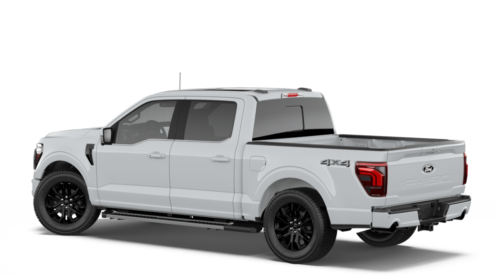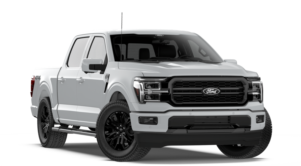 F-150 Lariat is nicely equipped with Equipment Group 502A High (2nd Row Heated Seats, 3.31 Axle Ratio, ActiveX Trimmed Bucket Seats, Ambient Lighting - Ice Blue Color Only, Illuminated Driver and Passenger Visors, Power-Adjustable Pedals with Memory, Power-Sliding Rear Window, Radio: B&O Unleashed Sound System by Bang & Olufsen, and Wheels: 20" Chrome-Like PVD), Ford Connectivity Package (1-Year Included), Internet access capable: 5G Modem - Ford Connectivity Package, Lariat Black Appearance Package (Black Exterior Badging, Black Grille, Black Taillamp Bezels, Body-Color Front and Rear Bumpers, Dark Interior Appliques, Gray Box Side Decal, and Matte Black Tailgate F-150 Decal), Mobile Office Package (Console Worksurface, Partitioned Lockable Rear Storage, and Wireless Charging), 4WD, 4-Wheel Disc Brakes, 8 Speakers, ABS brakes, Air Conditioning, Alloy wheels, AM/FM radio: SiriusXM with 360L, Auto High-beam Headlights, Auto-dimming door mirrors, Auto-dimming Rear-View mirror, Automatic temperature control, Brake assist, Bumpers: chrome, Chrome wheels, Compass, Delay-off headlights, Driver door bin, Driver vanity mirror, Driver's Side SecuriCode Keyless-Entry Keypad, Dual front impact airbags, Dual front side impact airbags, Electronic Stability Control, Emergency communication system: SYNC 4 911 Assist, Front anti-roll bar, Front Bucket Seats, Front Center Armrest, Front dual zone A/C, Front fog lights, Front reading lights, Front wheel independent suspension, Fully automatic headlights, Garage door transmitter, Heated door mirrors, Heated front seats, Heated steering wheel, Illuminated entry, Low tire pressure warning, Memory seat, Navigation system: Connected Navigation, Occupant sensing airbag, Outside temperature display, Overhead airbag, Overhead console, Panic alarm, Passenger door bin, Passenger vanity mirror, Power door mirrors, Power driver seat, Power passenger seat, Power steering, Power windows, Radio data system, Radio: B&O Sound System by Bang and Olufsen, Rain sensing wipers, Rear reading lights, Rear seat center armrest, Rear step bumper, Rear window defroster, Remote keyless entry, Security system, Speed control, Split folding rear seat, Steering wheel mounted audio controls, SYNC 4 with Enhanced Voice Recognition, Tachometer, Telescoping steering wheel, Tilt steering wheel, Traction control, Trip computer, Turn signal indicator mirrors, Twin Panel Moonroof, Variably intermittent wipers, Ventilated front seats, and Wheels: 18" Chrome-Like PVD.