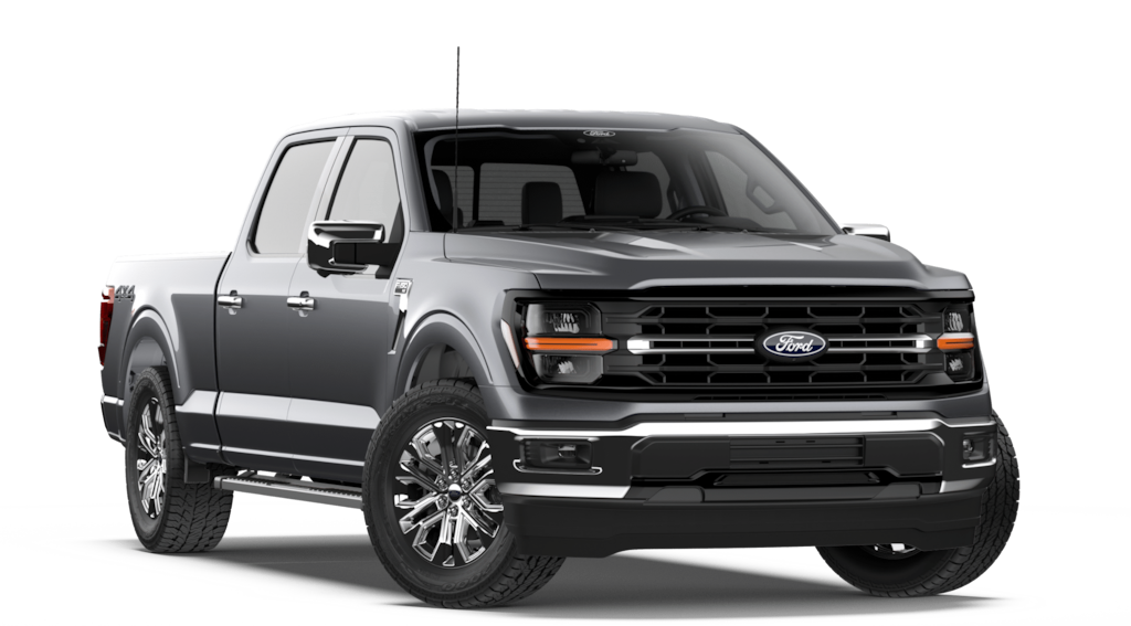 F-150 XLT is nicely equipped with Bed Utility Package (4 Pickup Box Tie-Down Plates, Bed Storage Boxes, LED Box Lighting, and Tailgate Step w/Work Surface), Equipment Group 302A Mid, Ford Connectivity Package (1-Year Included), Internet access capable: 5G Modem - Ford Connectivity Package, Tow/Haul Package, XLT Chrome Appearance Package, 4WD, 18" Painted Aluminum Wheels, 4-Wheel Disc Brakes, 6 Speakers, ABS brakes, Air Conditioning, Alloy wheels, AM/FM radio: SiriusXM with 360L, Auto High-beam Headlights, Brake assist, Bumpers: body-color, Cloth 40/20/40 Front Seat, Compass, Delay-off headlights, Driver door bin, Driver vanity mirror, Driver's Side SecuriCode Keyless-Entry Keypad (67Q), Dual front impact airbags, Dual front side impact airbags, Electronic Stability Control, Emergency communication system: SYNC 4 911 Assist, First Aid Kit w/Ford Logo, Front anti-roll bar, Front Center Armrest, Front fog lights, Front reading lights, Front wheel independent suspension, Fully automatic headlights, Heated door mirrors, Illuminated entry, Low tire pressure warning, Occupant sensing airbag, Outside temperature display, Overhead airbag, Overhead console, Panic alarm, Passenger door bin, Passenger vanity mirror, Power door mirrors, Power steering, Power windows, Radio data system, Radio: AM/FM Stereo w/SiriusXM 360L, Rear Parking Sensors, Rear reading lights, Rear step bumper, Rear window defroster, Remote keyless entry, Security system, Speed control, Split folding rear seat, Steering wheel mounted audio controls, SYNC 4 w/Enhanced Voice Recognition, Tachometer, Telescoping steering wheel, Tilt steering wheel, Traction control, Trip computer, and Variably intermittent wipers.