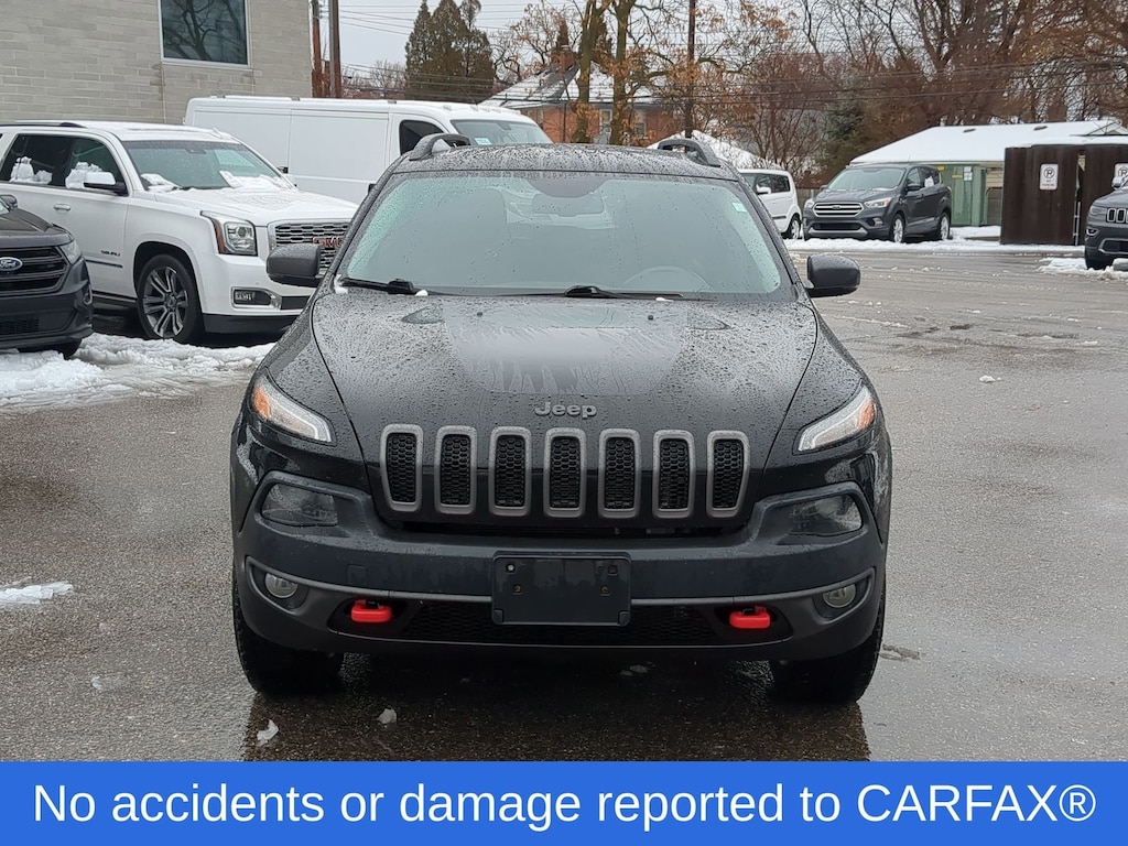 Diamond Black Crystal Pearlcoat 2018 Jeep Cherokee Trailhawk 4WD 9-Speed Automatic 2.4L I4 MultiAir Clean CarFax, CarFax One Owner Vehicle, AM/FM Radio: SiriusXM, Auto-Dimming Rear-View Mirror, Automatic Temperature Control, Cold Weather Group, Comfort/Convenience Group, Engine Block Heater, Front Dual Zone A/C, Fully Automatic Headlights, Heated Front Seats, Heated Steering Wheel, Jeep Rack Off Road Accessory Kit, Power Driver Seat, Power Front/Fixed Rear Full Sunroof, Power Liftgate, Quick Order Package 23E, Radio: Uconnect 3C w/8.4" Display, Rear Window Defroster, Remote Keyless Entry, Remote Start System, Security Alarm, Universal Garage Door Opener, Windshield Wiper De-Icer.